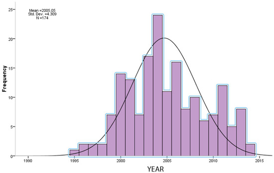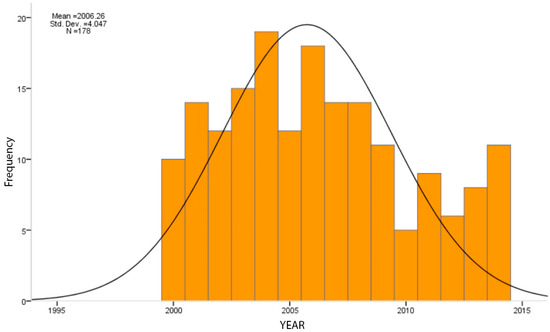 In 2000–2001, there was an increase in cases reporting alleged medical malpractice. In 2002, there was a slight decline in cases, followed by a peak in values reached in the subsequent two-year period and a minimal decline in the years 2005–2006. The subsequent period saw a slight but steady decrease in cases, with only one new rise in 2011 and a major decrease in the last year under analysis.