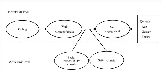 Past research indicates that during a crisis, people’s career calling may fluctuate during a short period of time [7,8]. We think the starting of COVID-19 offers good timing for studying healthcare workers’ career callings. Career calling, or occupational calling, is defined as “a transcending passion to use one’s talent and competencies toward a positive societal impact and a sense of meaningfulness is derived from the work in a chosen occupational domain” [1], and it becomes even more salient during the situation of COVID-19. Due to the severity of the pandemic, healthcare workers became warriors in society, and the huge amount of societal and professional demands greatly triggered an inherent career calling among them and urged them to focus and engage in their work [1,9]. This research aims to explore how healthcare professionals translate their career calling into work meaningfulness and then work engagement—a state where nurses connect with their work physically, cognitively, and emotionally [10]—during COVID-19. Furthermore, this research aims to demonstrate that building and maintaining a social responsibility climate and a safety climate in the workplace are important organizational operations to translate healthcare professionals’ work meaningfulness into work engagement.