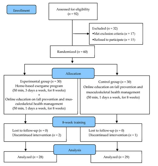 - Yang, C.M.; Chen Hsieh, J.S.; Chen, Y.C.; Yang, S.Y.; Lin, H.K. Effects of kinect exergames on balance training among community older adults: A randomized controlled trial. Medicine 2020, 99, e21228. [Google Scholar] [CrossRef]