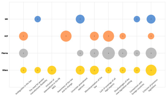 Seven of the ten sub-categories on the topic of legislation have rather negative or pessimistic undertones. This can be illustrated by an HCP interviewee, stating: “I probably wouldn’t be able to work under these provisions and I’m not at all sure how the ideas of better accessibility …. are treated.” This was overwhelmingly prevalent among the interviewees from the Pharma, expressing their scepticism in four well-apparent sub-groups; two related to the insufficient low coverage and two rather generic sentiments expressing dissatisfaction such as, “The negative is that it will certainly affect other treatments that were otherwise available.” Complementary to the dissatisfaction of Pharma can be understood the reference to the need for greater manufacturer flexibility, which was made by representatives of MH and the Others group.