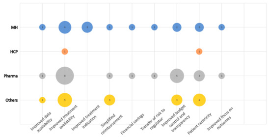 Impact on the reimbursement process was considered a threat by Pharma, expressed mainly within the sub-category discriminatory indication and/or reimbursement criteria and data reliability and accuracy. Both sub-categories refer to collected patient data that do not accurately and reliably reflect the full and true benefit, for example because the definition of the therapeutic benefit is too narrow. Poor reimbursement transparency and limited treatment availability is, like the two previous sub-categories, an expression of concern about the implementation of drug reimbursement under the PB MEA system. Here, however, the concern is primarily from the perspective of physicians and MH. Given this concern was predominantly expressed in HCPs and the MH, it obviously rather applies to a potential discrimination from treatment in some patients who may show insufficient response to treatment in the decisive parameter but still benefit in another way.