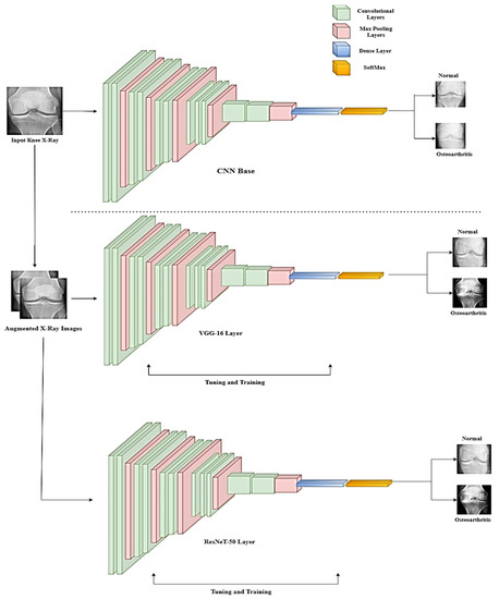- Ahmed, H.A.; Mohammed, E.A. Detection and Classification of The Osteoarthritis in Knee Joint Using Transfer Learning with Convolutional Neural Networks (CNNs). Iraqi J. Sci. 2022, 63, 5058–5071. [Google Scholar] [CrossRef]
