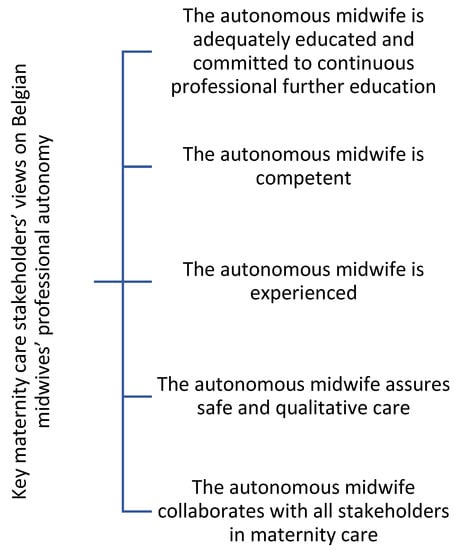 In this study, we aimed to capture the views of stakeholders in maternity care on Belgian midwives’ professional autonomy. Stakeholders exposed many differences between Belgian midwives’ levels of professional autonomy related to their professional domain. Our research identified competence, education, collaboration, and respect as prerequisites for midwives’ professional autonomy. These prerequisites are essential for improving the quality of midwifery care and ensuring the safety and well-being of women and newborns and should be considered in the context of the identified themes.
