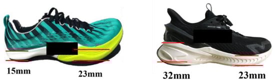 - Zhang, M.; Zhou, X.; Zhang, L.; Liu, H.; Yu, B. The effect of heel-to-toe drop of running shoes on patellofemoral joint stress during running. Gait. Posture 2022, 93, 230–234. [Google Scholar] [CrossRef]