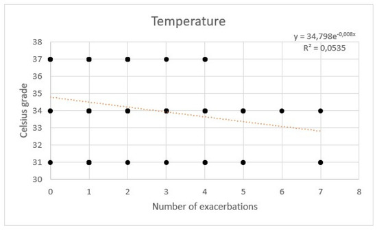 Regression of exacerbations rate and temperature of high flow nasal cannula.