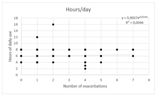 Regression of exacerbations rate and hours per day of high flow nasal cannula.