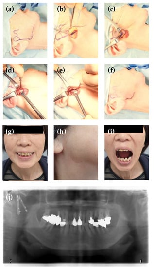 - Lee, S.J.; Chun, Y.J.; Jun, S.H.; Song, I.S. Modified high-submandibular appraoch for open reduction and internal fixation of condylar fracture: Case series report. J. Korean Assoc. Oral. Maxillofac. Surg. 2022, 48, 267–276. [Google Scholar] [CrossRef] [PubMed]