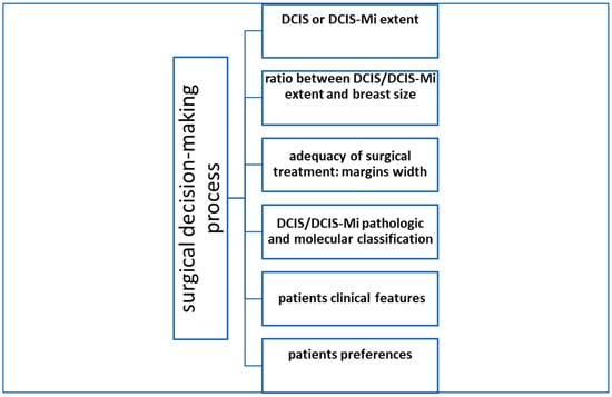 Clinical features impacting on DCIS/DCIS-Mi surgical decision-making process. DCIS—ductal carcinoma in situ; DCIS-Mi—microinvasive DCIS.