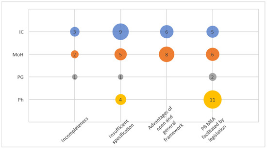 In general, MoH and ICs exhibited greater awareness and interest in the entire cluster compared to PGs. The code “PB MEA facilitated by legislation” seemed to strongly resonate with pharma stakeholders as it, obviously, could affects their business perspectives.
