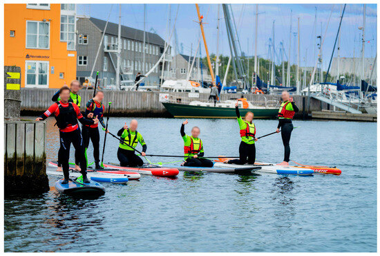 Surf & SUP Denmark [10] developed the project Freedom on Water (translated from Danish “Fri på vandet”) [11], and it was started in 2020. The project offered surfing and stand-up paddling (SUP) for adults living with a mental disorder such as depression, anxiety, or stress. The project was financially supported by the Danish Outdoor Council [12] in cooperation with ten associations across Denmark, where the activities took place and were carried out by volunteer instructors. The purpose of the project was to focus on being present in the moment and experiencing nature, thereby giving the participants a break from the challenges in their everyday lives.
