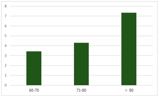 Bar graph presenting the HCS in different age ranges (60–70, 71–80, and >80 years).