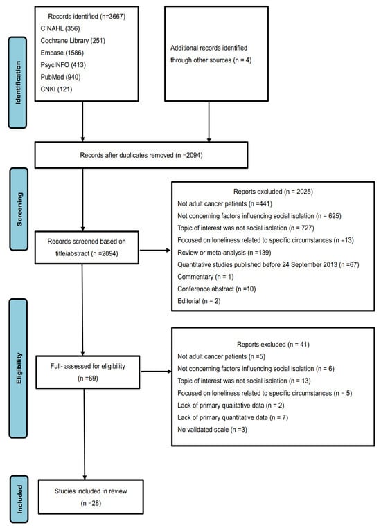 Wang, C.; Qiu, X.; Yang, X.; Mao, J.; Li, Q. Factors Influencing Social Isolation among Cancer Patients: A Systematic Review. Healthcare 2024, 12, 1042. https://doi.org/10.3390/healthcare12101042