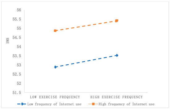 The moderating effect of Internet use on the relationship between physical exercise and SWB.