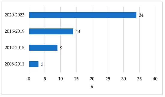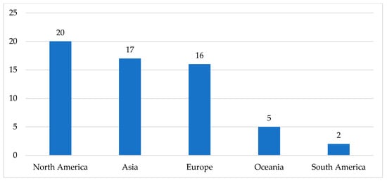 The publications ranged from the years 2008 to 2023. Most of the articles were published between 2020 and 2023, followed by publication dates between 2016 and 2019. Their distribution is shown in Figure 3. Studies from different continents were included in the review, and their distribution is shown in Figure 4.