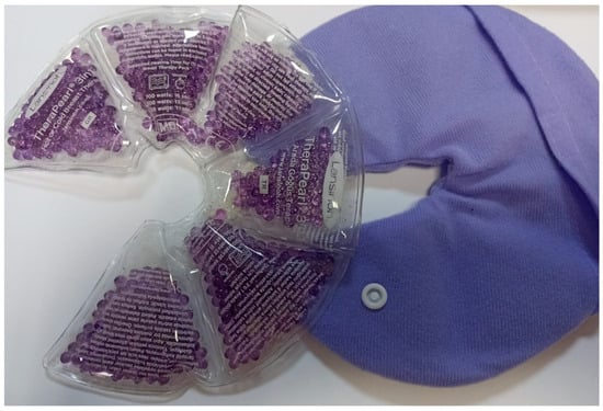 Information about the application: Thera Pearl thermogel packs for hot therapy can be heated in the microwave for a maximum of 15 s inside their fabric covers or in hot water by removing their fabric covers. The packages should be kept in boiled water for 1–2 min after removing their covers and then applied by placing them in the case.