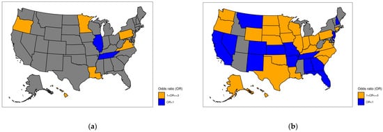 Finally, geospatial U.S. maps were created to display adjusted ORs of principal and secondary diagnosis coding specificity by state against the reference of New York, which is the state with the highest per capita healthcare expenditure in the U.S. [].
