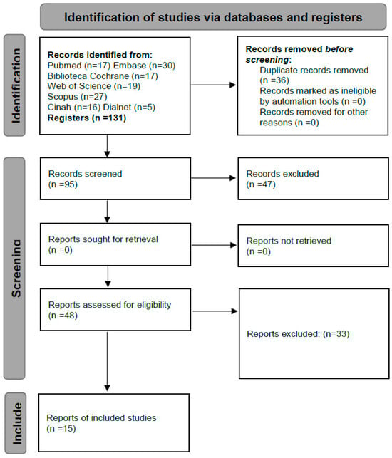 A total of 131 studies were initially identified, of which only 15 were finally selected (Figure 1).