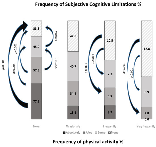 3.1. Physical Activity Frequency and Subjective Cognitive Limitations