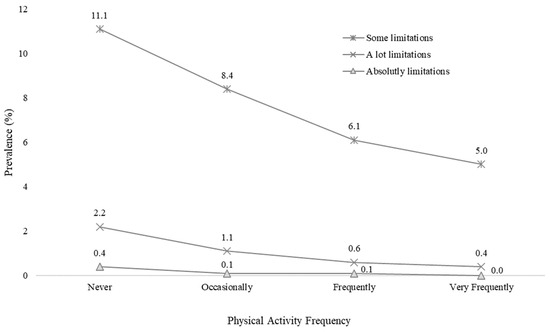 - Frequently: Participants who responded “I do physical activity several times a month”.