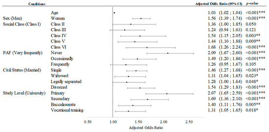 - Social Class: This was extracted from the variable “CLASE_PR” from both surveys. Both surveys grouped participants into six social classes (I, II, III, IV, V, and VI) according to their occupations as indicated. Table S2 shows a more comprehensive description of this classification.