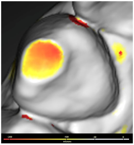 Regarding the methodology for analysing dental wear, some studies [] have suggested focusing on “index teeth” to simplify the process and reduce costs. However, in our research we observed considerable variability in the wear results, possibly due to measuring each surface of each tooth and different groups of teeth. Rather than opting for simplification, it would be advisable to develop software applications that facilitate the comparison of intraoral scans and highlight surfaces with greater wear progression, using repositories of multiple scans from each patient.