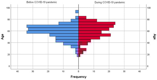 When analysing age intervals, age ranges shifted during COVID-19, with patients slightly older on average (59.55 years) compared to before (57.61 years). The most substantial numbers of patients were observed between the ages of 50 and 70, both before and during the COVID-19 pandemic. This phenomenon may be attributed to the differing initial manifestations of heart disease between men and women at age 55; men commonly present with coronary artery disease, while women are more predisposed to heart failure as the first cardiac disorder [18]. Moreover, it is noteworthy to mention that older individuals were detected more frequently during the COVID-19 period, likely due to their increased vulnerability to the virus. The severity of clinical manifestations was heightened in older patients due to their frequently compromised immune function, rendering them susceptible to the impacts of COVID-19 [19].