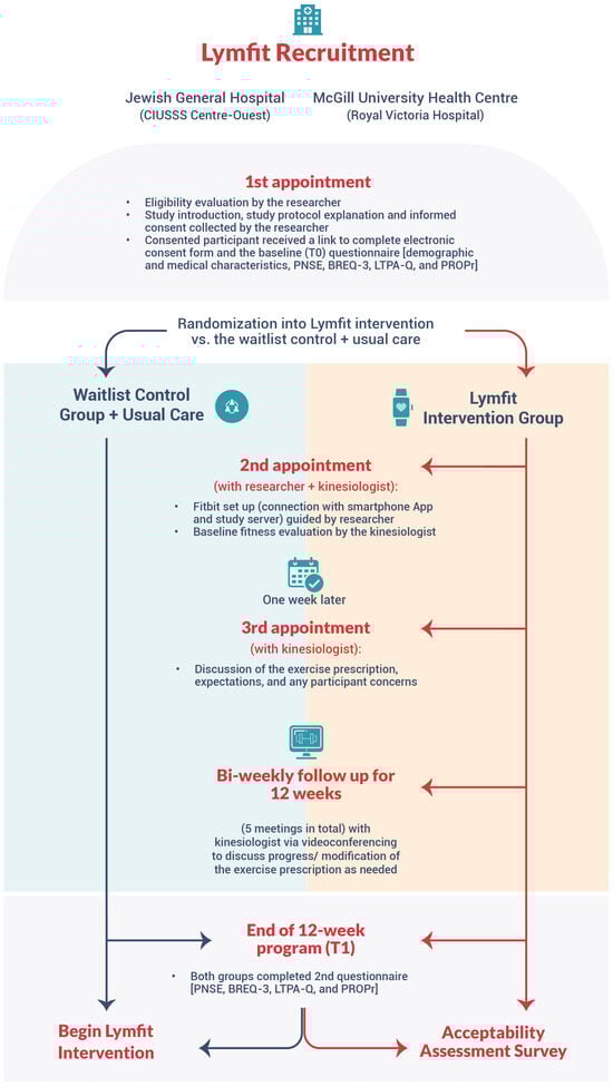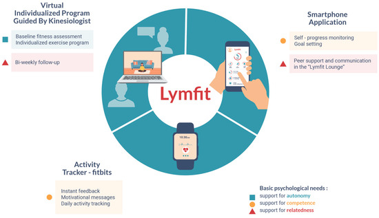 35. Angelillo, C.; Tock, W.L.; Salaciak, M.; Reid, R.E.; Andersen, R.E.; Maheu, C.; Johnson, N.A. A single-armed proof-of-concept study of Lymfit: A personalized, virtual exercise intervention to improve health outcomes in lymphoma survivors in the pandemic. PLoS ONE 2024, 19, e0275038. [Google Scholar] [CrossRef]
