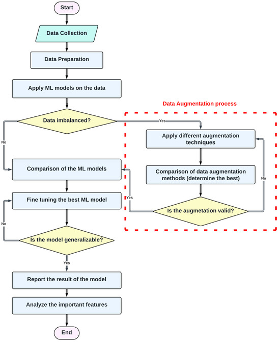 After the initial application of the machine learning models, we assessed the dataset balance for each target variable. Given the prevalence of imbalanced data, we employed our specially modified Synthetic Minority Over-sampling Technique (SMOTE), tailored for binary features. We identified the binary columns within the dataset. Following the resampling under the standard SMOTE framework, we applied a 0.50 threshold to the resampled data for binary features, converting values above this threshold to 1 and the rest to 0. This step guarantees the preservation of the binary characteristics of specific features, ensuring that the binary nature of certain features is preserved during the data augmentation process. Additionally, we used a few other common augmentation techniques such as the standard SMOTE [37], Gaussian Copula [38], and Conditional Tabular Generative Adversarial Network (CTGAN) [39].