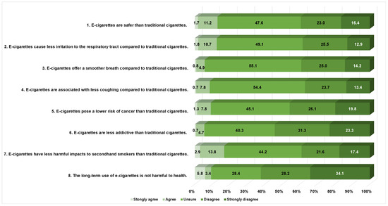 The following supporting information can be downloaded at: https://www.mdpi.com/article/10.3390/healthcare12141410/s1, Table S1: Opinions on safety of e-cigarettes (n = 760).