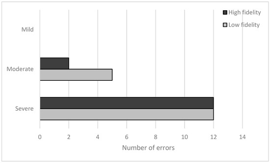 Overall, we observed 17 errors in low-fidelity conditions compared to 14 errors in the high-fidelity conditions. There were no differences between the number of mild or severe errors. By contrast, we identified five moderate errors in the low-fidelity condition and two in the high (Figure 4 and Table 5).