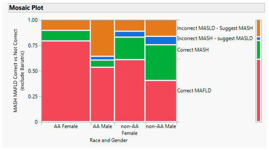 Non-AA patients were more likely to be correctly diagnosed with MASH as compared to AA patients (14% vs. 28%; p < 0.0071).