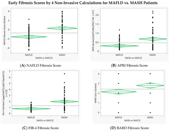 Table 3). While there was overlap between the non-invasive serum assessments in MASLD and MASH patients, where FIB-4 and APRI were more specific than NFS (