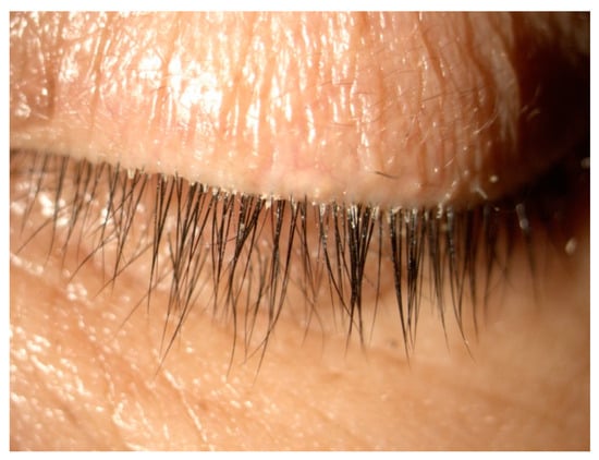 - Gao, Y.Y.; Di Pascuale, M.A.; Li, W.; Liu, D.T.; Baradaran-Rafii, A.; Elizondo, A.; Kawakita, T.; Raju, V.K.; Tseng, S.C. High prevalence of Demodex in eyelashes with cylindrical dandruff. Investig. Ophthalmol. Vis. Sci. 2005, 46, 3089–3094. [Google Scholar] [CrossRef] [PubMed]