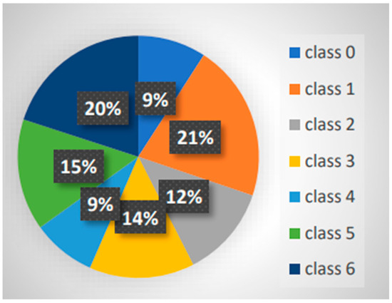 The dataset was divided into seven separate groups, each of which corresponded to a different period of time after the index admission for readmission [26]. The following temporal categories were chosen: “class 0” for readmissions occurring within 7 days or less; “class 1” for readmissions occurring between 7 and 30 days; “class 2” for readmissions occurring between 30 and 60 days; “class 3” for readmissions occurring between 60 and 120 days; “class 4” for readmissions occurring within 120 to 180 days; “class 5” for readmissions occurring within 180 to 365 days; and “class 6” for those exceeding 365 days.