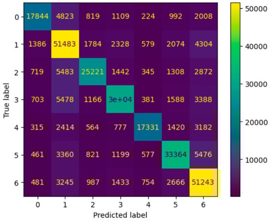 The model was trained in a distributed environment of 40 CPUs with 256 GB RAM. The XGBoost library implementation in Python was used for training the model. The objective function of the model was set to “multi:softmax”.