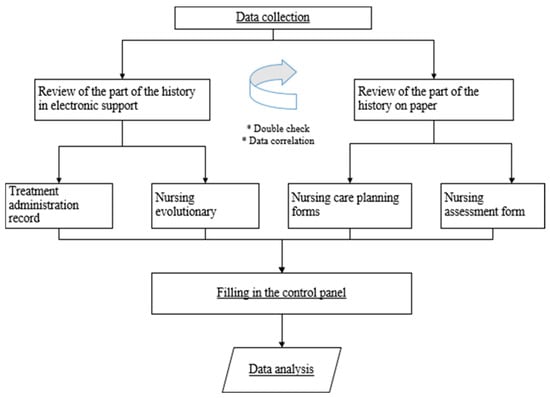 This dual verification involved reviewing both nursing evolution and the signature records of treatment administration in the electronic medical records, as well as nursing assessment and care planning.