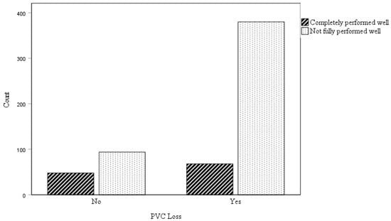 Comparison of PVC loss between patients who complied with the PVC management and care protocol and those who did not.