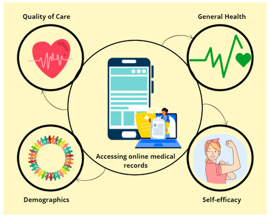 Considering the extensive amount of information that survivors need to handle, resorting to health information technology, and specifically online medical records, remains an important component of healthcare reform, offering more convenient access to care [7,8,9]. The Institute of Medicine report Crossing the Quality Chasm: A New Health System for the 21st Century posited electronic patient–physician messaging as a promising technology to improve the quality and efficiency of healthcare [7]. Studies suggest that providing patients with online access to their medical records may reduce the need for face-to-face contact [8,10,11]. The presumption is that if patients could look up health information such as their test results, request prescription refills, schedule appointments, and send secure e-mail to clinicians, then their use of clinical in-person and telephone calls may decrease [8,10,11]. Engaging patients and their relatives to play an active role in their healthcare process is a critical element of patient-centered care, yet patients are an underused resource in the healthcare system [12]. Although it is beneficial for cancer patients, accessing online medical records is still limited because of many reasons. Some cancer patients do not prefer the disclosure of bad news online, prefer communicating with doctors directly, and find electronic medical records overwhelming [13]. Some studies have also found that younger adults were more likely to access the records than older adults [14].
