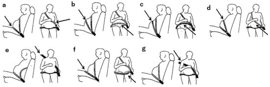 - Hanahara, K.; Hitosugi, M.; Tateoka, Y. Education for appropriate seatbelt use required for early-phase pregnant women drivers. Sci. Rep. 2020, 10, 17609. [Google Scholar] [CrossRef] [PubMed]