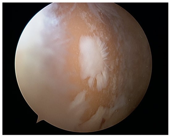 The microfracture technique is frequently used for the treatment of chondral injuries. Nevertheless, like any other surgical procedure, it poses a distinct set of possible risks. Incomplete adhesion or partial filling of the defect by unstable blood clots may lead to poor healing []. The occurrence of osseous outgrowth has been observed subsequent to inadvertent removal of the subchondral bone during the operation. Osseous overgrowth occurs frequently, with a reported incidence ranging from 25% to 49% among patients [,].
