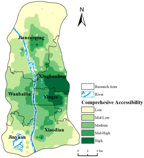4.1.2. Analysis of Comprehensive Accessibility Index for Multiple Transportation Modes