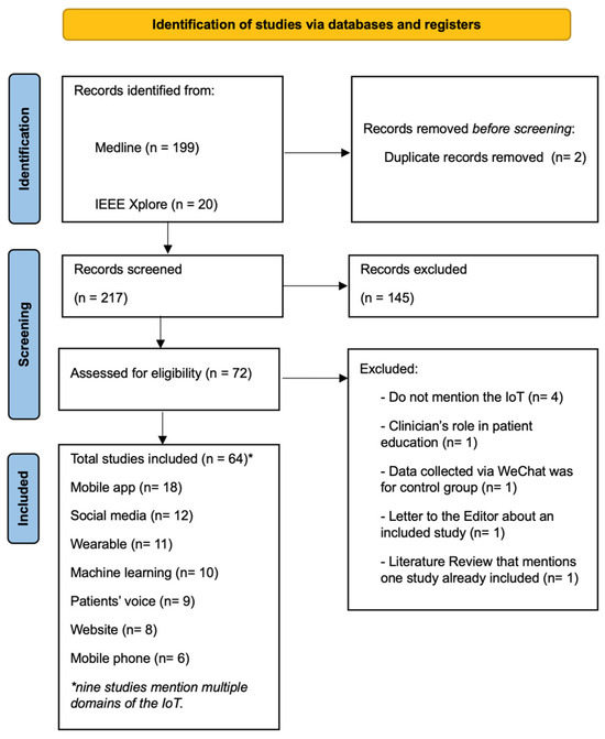 Summary of results: PCOS and the IoT (n = 64, nine studies mentioned multiple domains of the IoT).