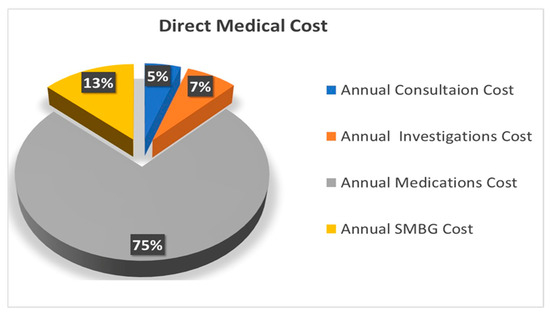 Percentage breakdown of direct medical cost of T2DM among study participants.