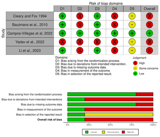 Risk-of-bias assessment of the included trials using the Cochrane Risk of Bias 2 for randomized controlled trials [57,58,59,60,61].