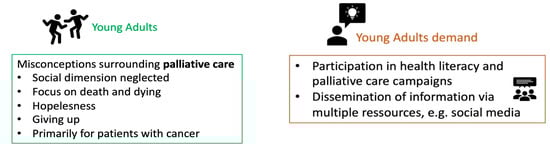 On the other hand, young adults demand that palliative care is destigmatized and normalized within the education system. They particularly advocate for participation in the development of educational content. The analyzed studies repeatedly emphasized a participatory approach in the development of public health campaigns aimed at destigmatization of palliative care.