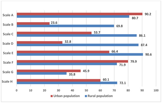 It should be noted that the individual perception of the social parameters of the environment, combined in the scales of the NEWS questionnaire, differed among the urban and rural residents (Figure 2).