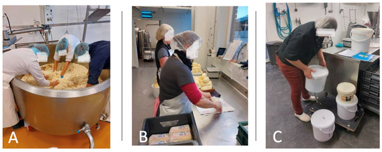 INRS analysis reveals a significant risk associated with awkward postures. The repetitive nature of certain frequently observed manual tasks, like butter packaging and sizing (Figure 5B), maintained for several hours with the head bent and arms slightly raised, is a high-risk factor for MSD, and correlates with the pain reported in the lumbar and cervical regions, for example. Even if the INRS analysis globally reveals an acceptable risk level, the potential strain of seemingly “light” tasks in the long term must be considered [28]. Another way of assessing the risk of developing MSD would be to analyze a dairy-processing worker over a full week, considering all the tasks performed in the production of all milk-based products. This analysis will be addressed in future research.