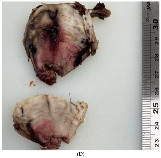 Under the guidance of radiological images, the skull was removed. The brain must be examined and characterized. Macroscopic examination was conducted evaluating the epidural, dural, and subdural tissue integrity, as well as the skull and galea aponeurotica.