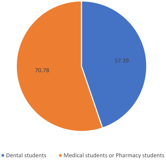 A total of 382 students of medicine, dentistry, and pharmacy in all years of education from universities all over Poland participated in the project (male:female ratio 79 (20.6%):303 (79.1%)) at an age ranging from 20 to 25 years. The research was conducted using the Google Forms platform and distributed through social media such as Facebook and Instagram. The study ensured full anonymity for individual students and the universities at which they studied. Participation in the study was voluntary. To assess the required number of respondents among medicine, dentistry, and pharmacy students we used the data from the Central Statistical Office in Poland related to the total number of students of medicine, dentistry, and pharmacy in the academic year 2022/2023 in Poland. To set the needed number of respondents in each study group of students, we used the following values: d = 0.10 (an absolute precision), α = 0.05, N (population size). Therefore, we received the required number of students from medicine, pharmacy and dentistry faculties for the study to be valuable: medical students N = 96, dental students N = 94, pharmacy students N = 95. Ultimately, the study comprised 153 medical students, 115 dental students, and 114 students of pharmacy. It was conducted from January 2023 to February 2023 and consisted of the single and anonymous completion of a proprietary online questionnaire, made available to students of medicine, dentistry, and pharmacy. Adult students of medicine, dentistry, and pharmacy were included in the study. Exclusion criteria were the presence of diseases requiring the application of chronic painkillers and pregnancy.