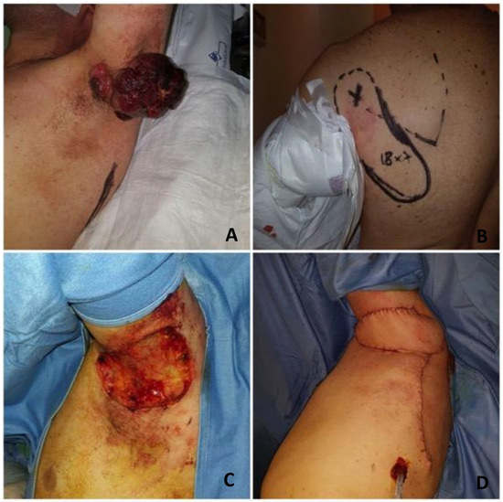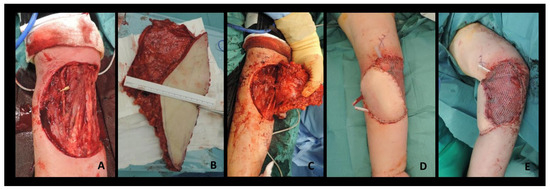 In our experience, the patient’s related factors, the clinical setting, and the surgeon’s expertise guide the choice of the best suitable surgical solution. Examples of the reconstruction of each anatomical area of the upper limb are reported in in our clinical cases (Figure 1, Figure 2, Figure 3, Figure 4, Figure 5 and Figure 6).